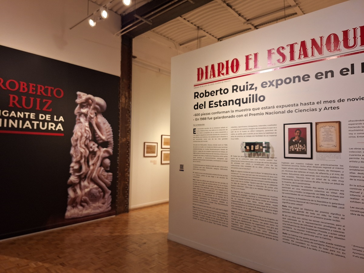 Existen múltiples anécdotas en torno a la amistad que entablaron Roberto Ruiz y Carlos Monsiváis, y en todas ellas destaca la admiración que profesó el escritor respecto al trabajo del escultor, a quien llamó “Gigante de la miniatura”. En la actualidad, la tradición iniciada por el maestro Ruiz continúa a través de la producción de sus hijos, José Manuel y Abraham, artistas que aprendieron desde su infancia mirando y asistiendo a su padre, antes de realizar sus propias obras, algunas de las cuales se exhiben en esta muestra.
