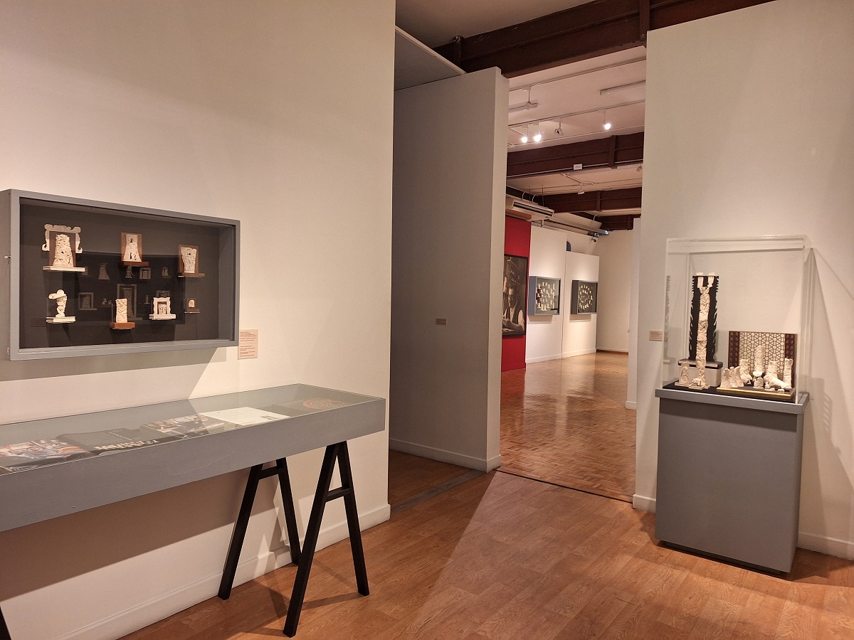 Las obras que conforman la exposición "Roberto Ruíz. Gigante de la miniatura" provienen de la colección que Carlos Monsiváis reunió durante más de cuarenta años y están organizadas por décadas, lo que permite hacer un recorrido temporal por la obra del artista y descubrir su periplo a través del tiempo.